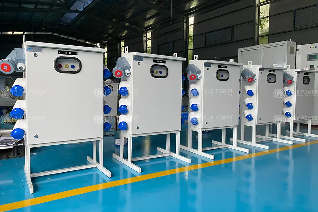 Tủ điện cấp nguồn thi công là loại tủ điện di động có chân đế dùng cấp nguồn thi công cho các công trình xây dựng. Tủ được gắn các thiết bị bảo vệ chống dò điện, chống mất pha, bảo vệ ngắn mạch, quá tải cho các ổ cắm công nghiệp gắn trên tủ.