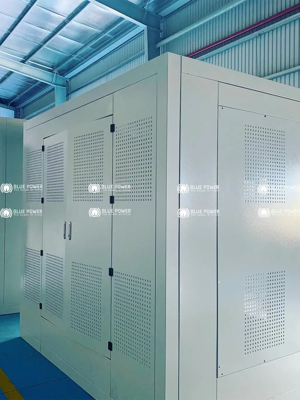 BluePower cung cấp dịch vụ thiết kế, gia công và sản xuất vỏ trạm biến áp (Transformer Enclosures) và tủ điện (Electrical Enclosures/Cabinets) theo mô hình sản xuất khép kín từ thiết kế kỹ thuật, gia công kim loại tấm, sơn hoàn thiện đến lắp ráp và kiểm soát chất lượng.